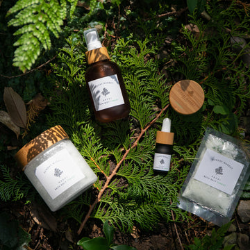 Blessing of Nature 塩職人が黒潮の海から直接海塩を採取し、昔ながらの平釜製法により自釜で薪を使い丹念に手作りで製造された海塩を使用したバスソルト。岩塩に比べ結晶の粒が細かいため、お湯に溶けやすく使用感が良いのが海塩の特徴です。海塩の遠赤効果で血行が良くなり体を芯から温め、海の天然ミネラルが水分を保持するため肌に潤いとツヤを与えてくれます。 天然由来成分94.8%以上 自然の恵みを取り入れ、体にも自然にも優しいものを 香料はエッセンシャルオイル 植物の花や葉から芳香成分を抽出したエッセンシャルオイルのみで香りづけ。ふんわり優しい香りが特徴でリラックスにも◎合成香料の強い香りが苦手な方にもオススメです。 心やすまる天然木の容器 使うたびに心やすまる天然木の蓋を使用しました。 How to Use バスソルトとして 浴槽(約200リットル)に38〜40度程度のお湯を張り、バスソルトを入れよくかき混ぜながら溶かしてください。【使用量の目安】蓋すりきり一杯分が1回分の目安(30g)です。天然成分のみで香りづけしていますので、湯船に入れるとふんわり優しく香りが広がります。合成香料のような強い香りはつけていませんので、より強く香りを感じたい方は出来るだけ湯船に入る直前に入れてください。...