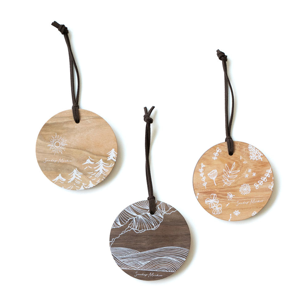 フレグランスオイルやエッセンシャルオイルなどお好みの香りを染み込ませ香りを楽しむためのアロマプレートに、SUNDAY MARKETオンラインショップ限定デザインが3種類追加されました!オモテはこれまでと同じ土佐ヒノキ、ウラは木材もデザインも異なる3種類。表裏で違った表情を楽しめる、いつもよりすこしだけ贅沢なアロマプレートです。森の健康を守るために必要不可欠な間引きによって切り出された、土佐ヒノキの間伐材を使用しています。